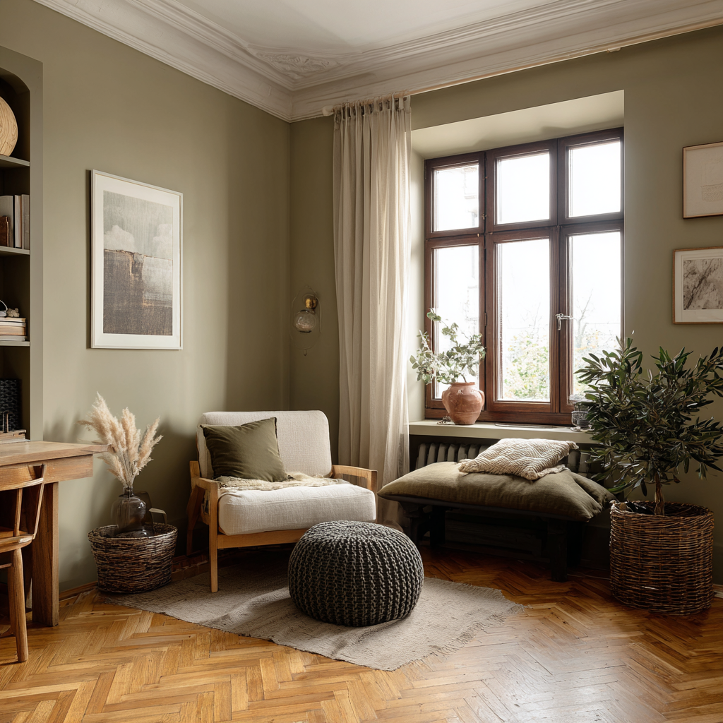 Range is a warm, earthy neutral that brings a sense of natural comfort into any space. It blends soft beige with subtle olive undertones, creating a grounded hue that feels organic and quietly refined. This is the kind of color that adapts effortlessly to its surroundings and adds depth without overwhelming the room.