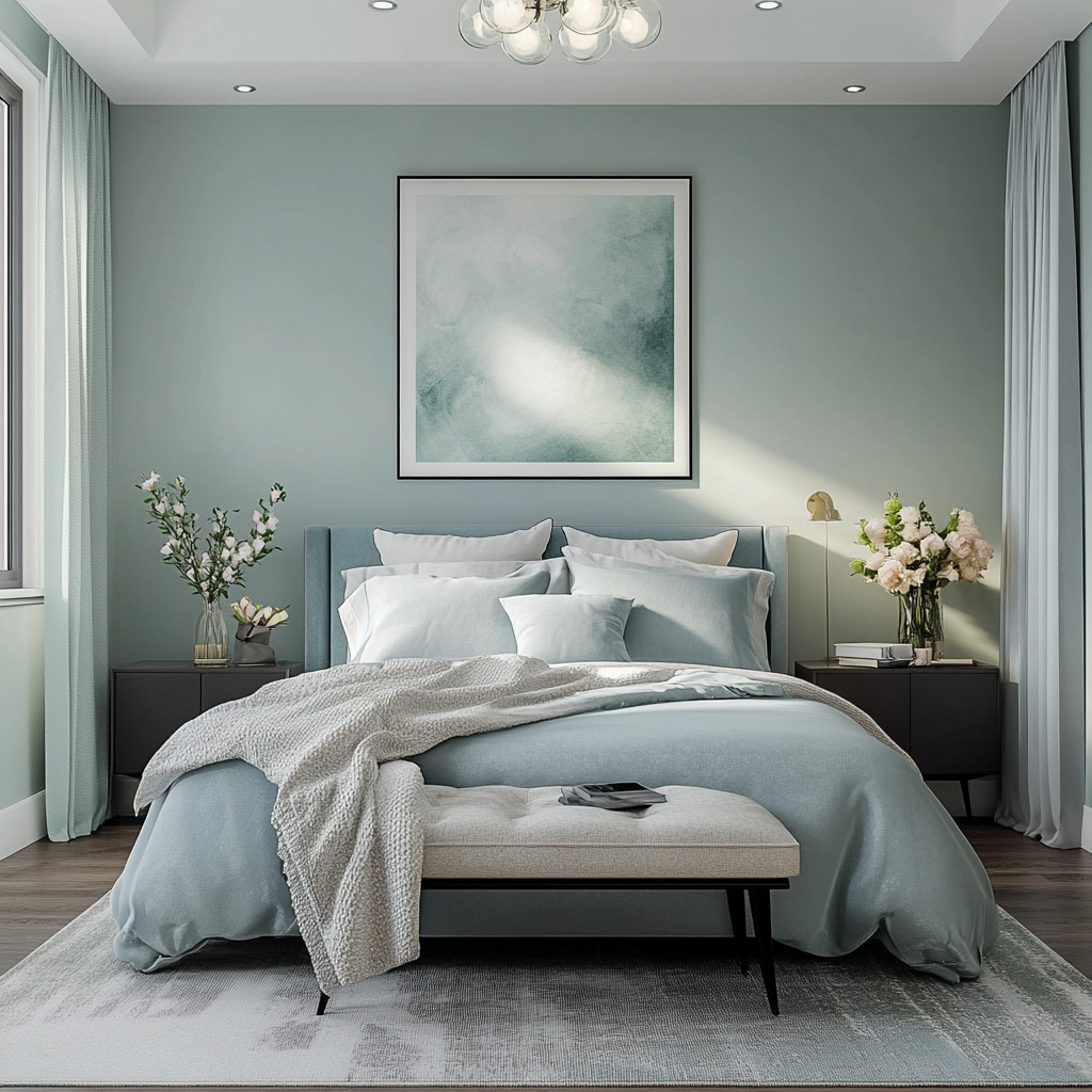 Variegated is a tranquil blend of blue and green with a touch of gray that captures the shifting hues of mist over water. Both fresh and grounded, it creates a soothing backdrop that feels effortlessly elegant. This versatile shade adapts beautifully to light, evoking calm in a bedroom, balance in a bathroom, or quiet sophistication in a living space.